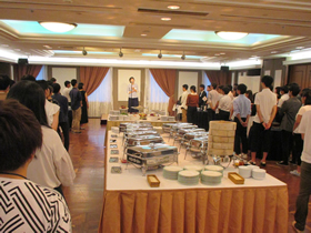 8月に梅田センタービル(大阪市北区)にて、奨学生の心得等についての説明及び山口幹生様の社会の変化・仕事の価値観についての講演を行いました。その後場所を大阪東急REIホテルに移し、おいしい食事をいただきながら懇親会を開催しました。説明会前には、希望者を対象に体感型ショールーム「フーハ大阪」の見学を行いました。