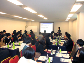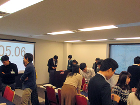 12月に大学3回生と大学院1回生を対象にTKP新宿カンファレンスセンター(東京都新宿区)にて、就職活動に関する研究会兼懇親会を行いました。リクルートの方から就職活動応援講座を受け、当財団OB、OGの方にライトニングトークをしていただき、その後、大学4回生や大学院2回生の方にも参加いただき、ビジネスゲームを行いました。その後場所をオペラシティに移し、おいしい食事をいただきながら懇親会を開催しました。