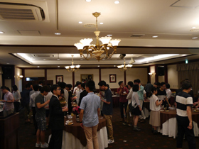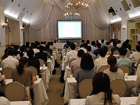 8月にホテルグリーンプラザ大阪(大阪市北区)にて、奨学生の心得等についての説明及び中川喜代子先生の人権についての講演を行いました。その後、ホテルの方からビュッフェについてのマナー講習を受け、おいしい食事をいただきながら懇親会を開催しました。説明会前には、希望者を対象に体感型ショールーム「フーハ大阪」の見学を行いました。