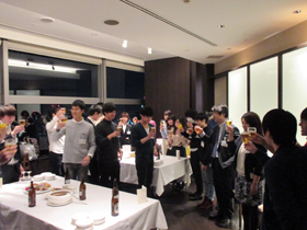 12月に大学3回生と大学院1回生を対象にフーハ東京(東京都新宿区)にて、就職活動に関する研究会兼懇親会を行いました。リクルートの方から就職活動応援講座を受け、その後、大学4回生と大学院2回生の方にも参加いただき、体験談等のディスカッションを通して就職活動の基礎を学びました。フーハ東京の見学も行い、その後場所をオペラシティタワーに移し、おいしい食事をいただきながら懇親会を開催しました。