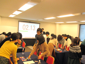 12月に大学3回生と大学院1回生を対象にTKP新宿カンファレンスセンター(東京都新宿区)にて、就職活動に関する研究会兼懇親会を行いました。リクルートの方から就職活動応援講座を受け、当財団OB、OGの方にライトニングトークをしていただき、その後、大学4回生や大学院2回生の方にも参加いただき、ビジネスゲームを行いました。その後場所をオペラシティに移し、おいしい食事をいただきながら懇親会を開催しました。