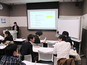 12月に大学3回生と大学院1回生を対象にフーハ東京(東京都新宿区)にて、 就職活動に関する研究会兼懇親会を行いました。 リクルートの方から就職活動応援講座を受け、その後、ワークをしながら就職活動の基礎を学びました。