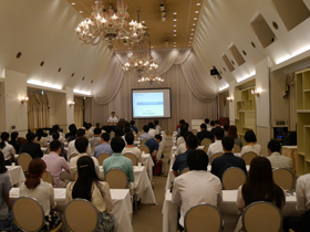 8月にホテルグリーンプラザ大阪(大阪市北区)にて、奨学生の心得等についての説明及び中川喜代子先生の人権についての講演を行いました。その後、ホテルの方からビュッフェについてのマナー講習を受け、おいしい食事をいただきながら懇親会を開催しました。説明会前には、希望者を対象に体感型ショールーム「フーハ大阪」の見学を行いました。