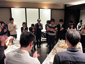 12月に大学3回生と大学院1回生を対象にフーハ東京(東京都新宿区)にて、就職活動に関する研究会兼懇親会を行いました。リクルートの方から就職活動応援講座を受け、その後、大学4回生と大学院2回生の方にも参加いただき、体験談等のディスカッションを通して就職活動の基礎を学びました。フーハ東京の見学も行い、その後場所をオペラシティタワーに移し、おいしい食事をいただきながら懇親会を開催しました。